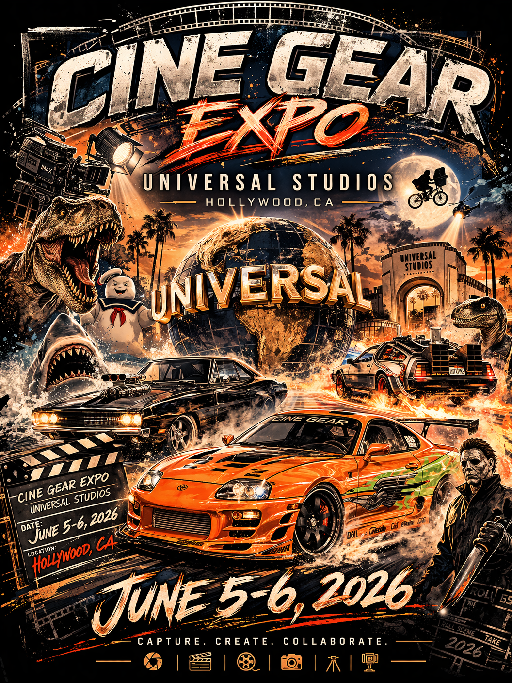Designed exclusively for this year’s Cine Gear Expo at Universal Studios, this collectible tee brings together iconic characters inspired by the legendary Universal universe, making it a must-have for film professionals, fans, and collectors alike. Whether you were there in person or just want to own a piece of the moment, this shirt captures the energy of Cine Gear’s long-awaited homecoming.